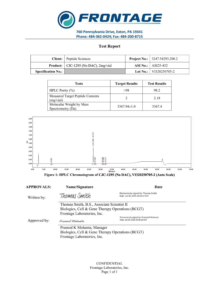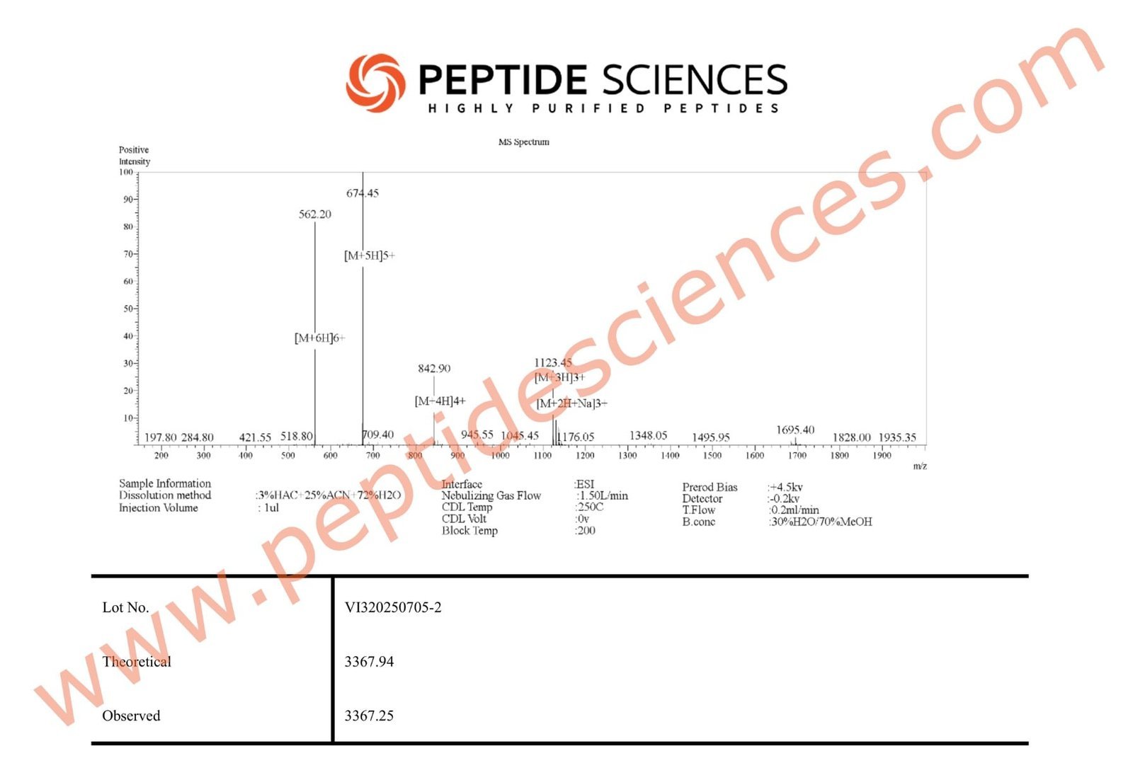 - Enhanced Data Reproducibility: Due to the 100% accurate sequential fingerprint of our peptides, researchers can expect reproducible results across multiple trial phases.