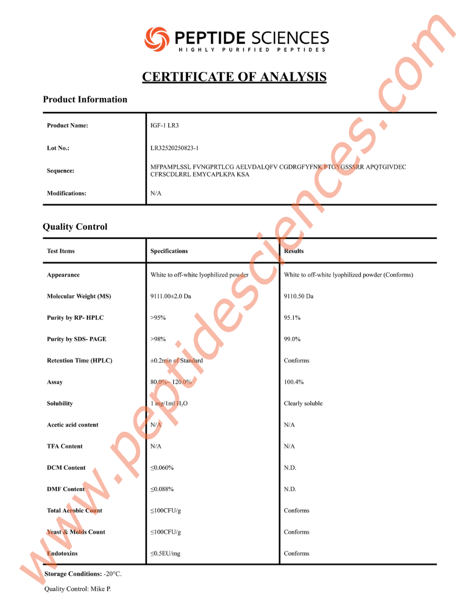 • Verified 99%+ Purity: Every 1mg vial of IGF-1 LR3 is tested via HPLC-MS to ensure industry-leading quality.