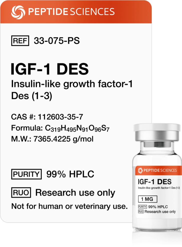 IGF-1 LR3 (Long Arginine 3-IGF-1) is a synthetic analog of human insulin-like growth factor 1, specifically engineered with a 13-amino acid N-terminal extension. This modification is designed to improve the peptide’s stability and receptor binding affinity by preventing it from being neutralized by inhibitory binding proteins. As a top choice for laboratories looking to buy research peptides, this 1mg vial is essential for studying sustained cellular growth. At the Peptide Sciences Official Store, we provide HPLC-MS verified IGF-1 LR3 with guaranteed 99%+ purity. Every order includes a full COA and is sent via discreet shipping.