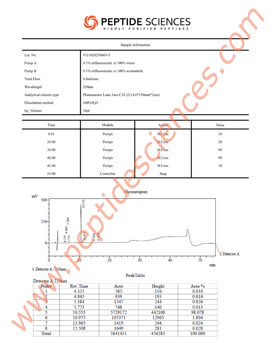 Reliable physiological research depends on reagents that are free from structural degradation or cross-contaminants. At PeptideScience, we prioritize the accuracy of your results through rigorous, multi-stage quality control.