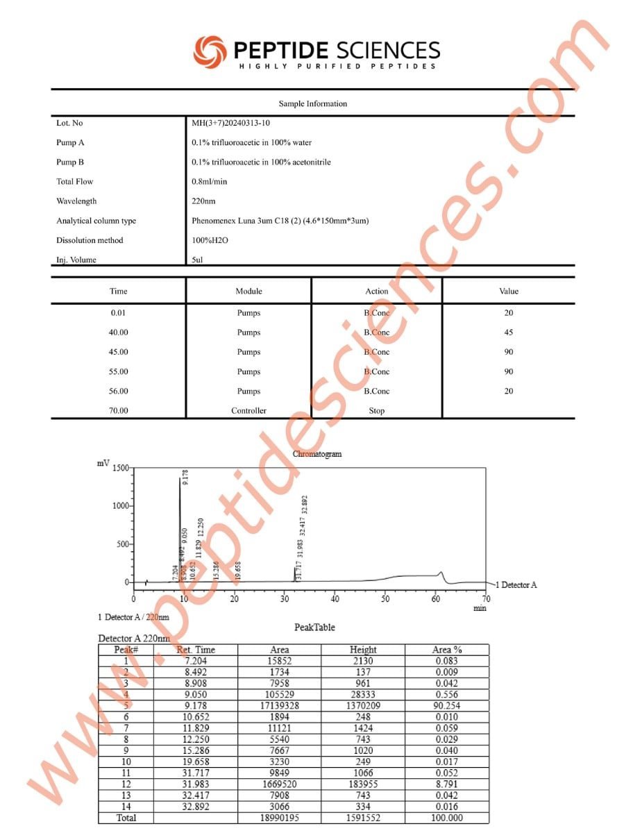 Verified 99%+ Purity: Every batch is tested via HPLC-MS to guarantee the exact peptide ratio and structural integrity.