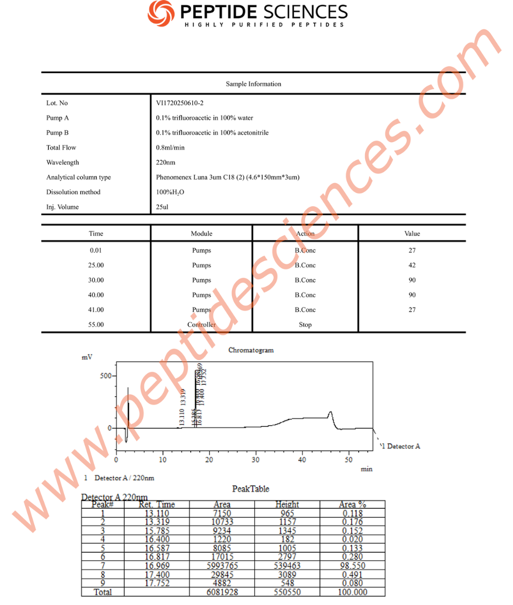 Verified 99%+ Purity: Every batch of Sermorelin is tested via HPLC and Mass Spectrometry to guarantee sequence accuracy and purity.